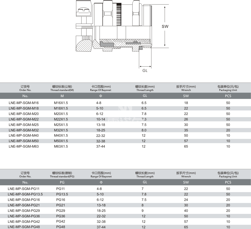 產(chǎn)品名稱:LNE-MP-SGM 黃銅雙鎖緊屏蔽型電纜防水接頭