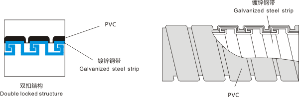 產品材質:(內層)采用鍍鋅鋼帶及特殊防腐處理,(外層)采用PVC原料(抗紫外線、防老化)。
