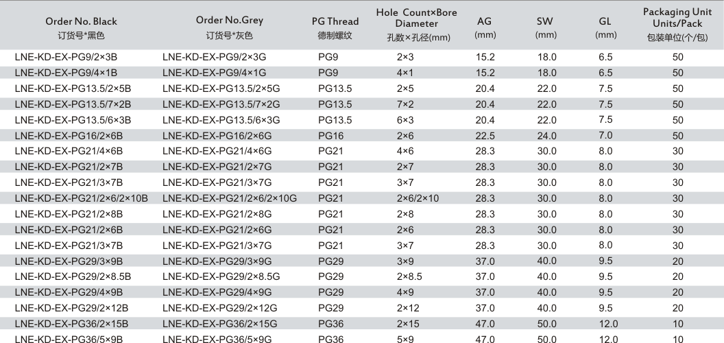 產(chǎn)品名稱: LNE-KD-EX 多孔塑料電纜防水接頭