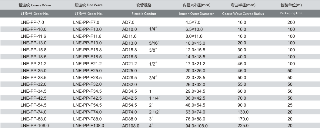 產(chǎn)品名稱:LNE-PP 阻燃聚丙烯軟管
