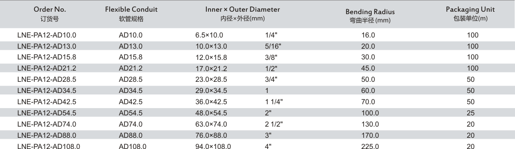 產(chǎn)品名稱: LNE-12 標準尼龍12軟管
