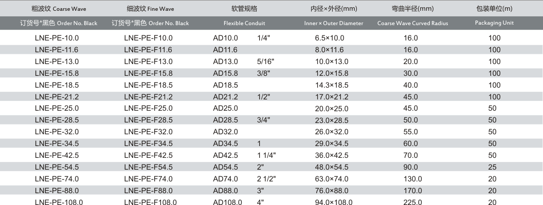 產(chǎn)品名稱:LNE-PE 聚乙烯軟管
